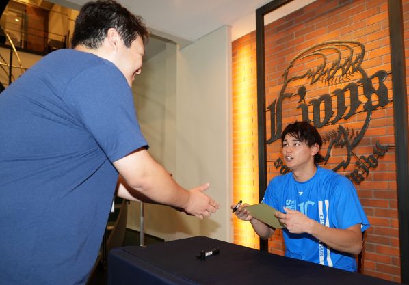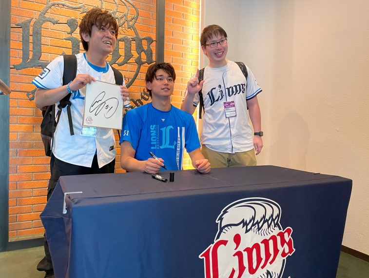 今年9月中旬、「ライオンズでんき」ご加入者様向けのキャンペーン特典としてご加入中の皆さまの中から抽選で10名様をご招待し、埼玉西武ライオンズの選手との対面サイン会を実施しました。西武ライオンズからは西川愛也選手が来てくださいました!